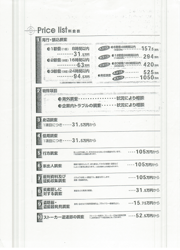 C社の調査料金の資料